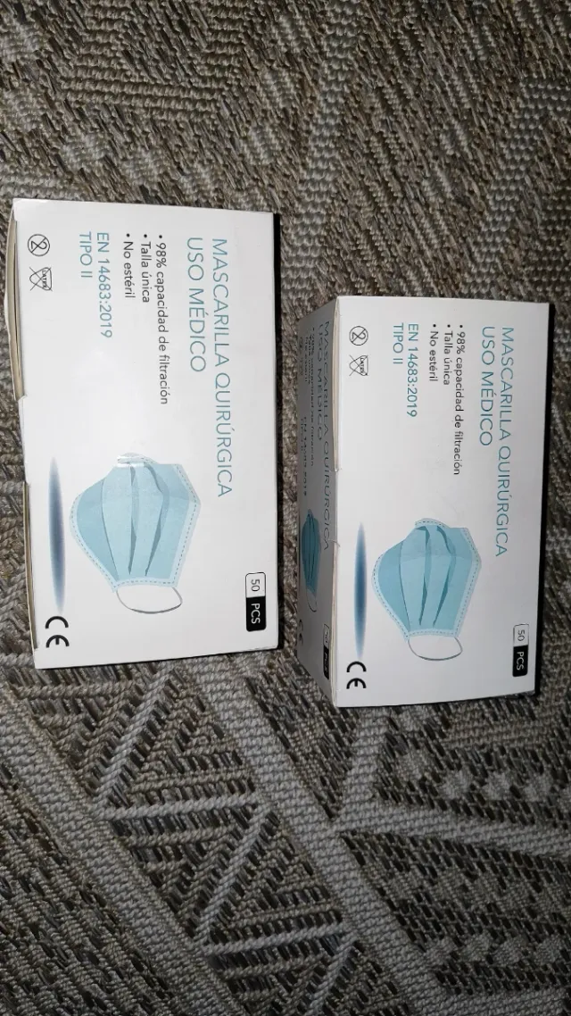 Detalles del productoCaja de mascarillas quirúrgicas de uso médico.