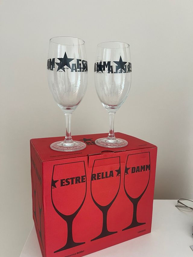 Nuevo · Estrella Damm · Rojo y Transparente · Vidrio