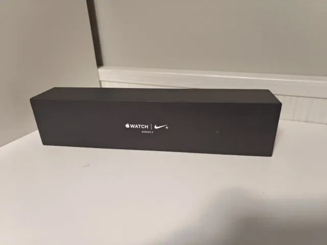 Caja original para Apple Watch Nike+ Series 3. Perfecta para guardar tu reloj o como repuesto. - Diseño elegante en color negro. - Logo de Apple y Nike grabado.