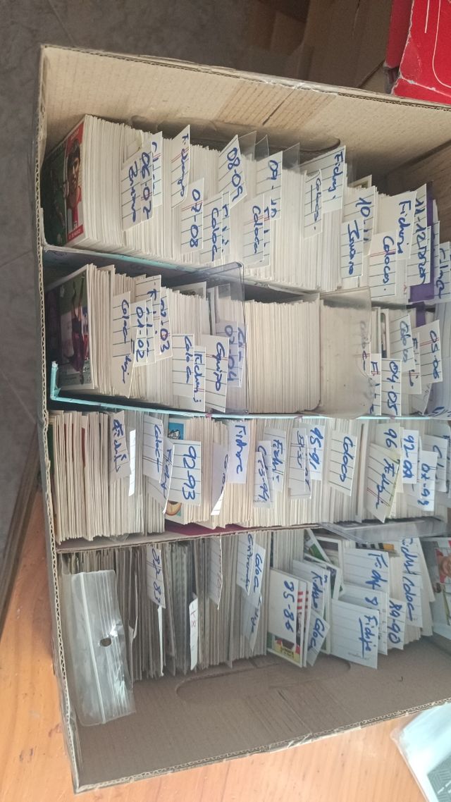 Detalles del productoCaja llena de cientos de cromos la mayoría fichajes y colocas,cromos difíciles los de los años 80 muchos son recuperados pero aún así tienen su valor ,no miro listas , Más de 1500 cromos ,algunos son recuperados de la década de los 80 y 90 pero están bien por delante ,