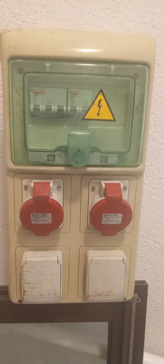 Detalles del productoPanel eléctrico con caja de fusibles y varios enchufes.