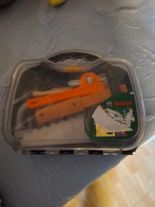 Detalles del productoCaja de herramientas de juguete de la marca Bosch, fabricada por Klein.