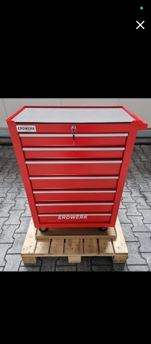 Detalles del productoCaja de herramientas de la marca ERDWERK en color rojo. Cuenta con varios cajones para organizar tus herramientas.
