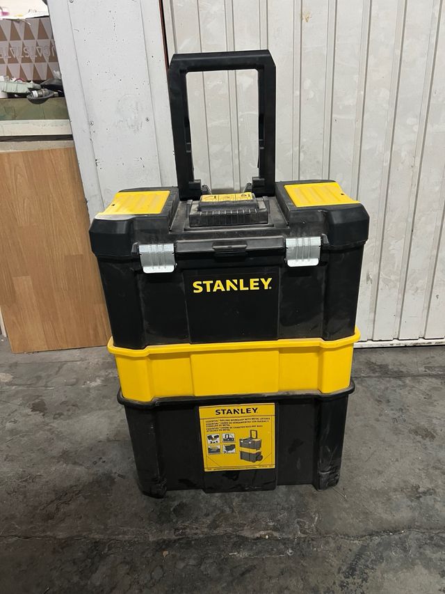 Detalles del productoCaja de herramientas Stanley de plástico resistente, ideal para organizar y transportar tus herramientas.