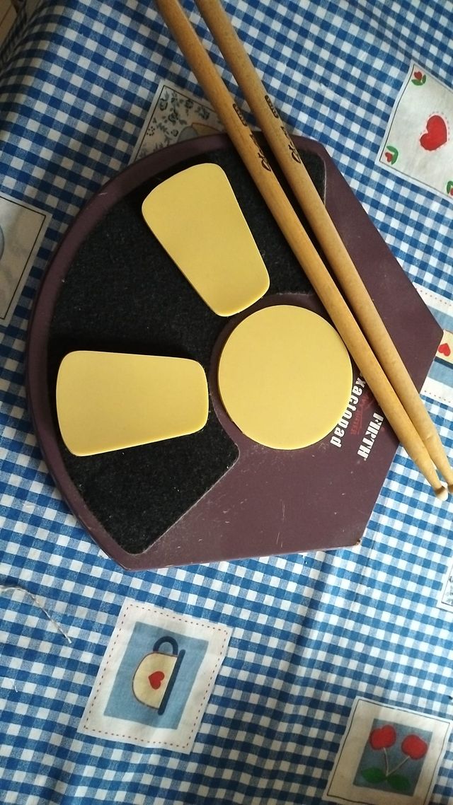 Caja de práctica para mejorar tus habilidades con la batería. Incluye tres almohadillas de diferentes formas.