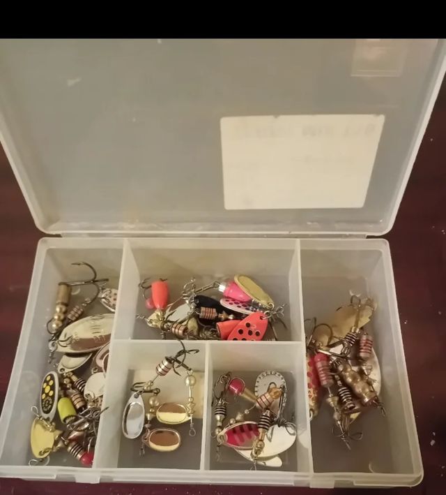 Caja con una selección de señuelos de pesca. - Señuelos de diferentes tamaños y - Ideal para pesca deportiva. 35€