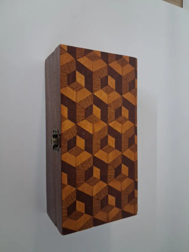 Detalles del productoElegante caja con un diseño geométrico realizado en marquetería.