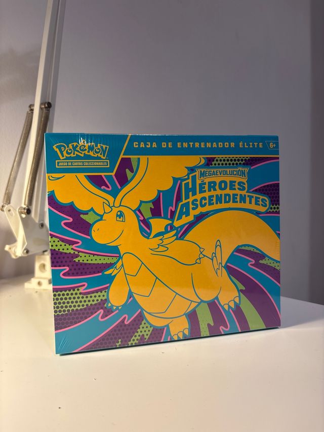 Detalles del productoCaja de Entrenador Élite de la expansión Héroes Ascendentes de Pokémon en español.