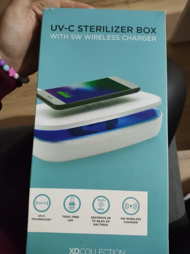 Detalles del productoCaja esterilizadora UV con tecnología de carga inalámbrica.