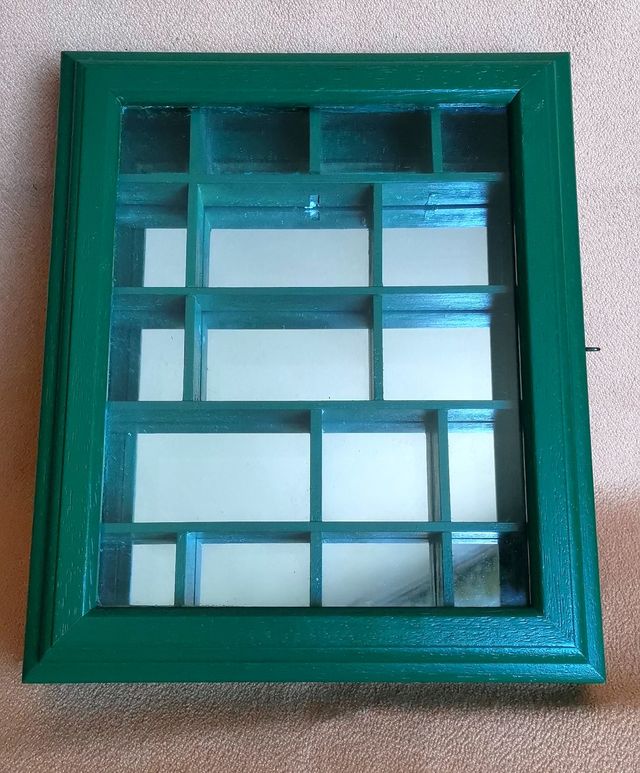 Detalles del productoVitrina expositora de madera con 17 compartimentos, ideal para coleccionistas. Dedales, Miniaturas, Figuritas, Joyería ,Objetos de Valor, Juguetes Pequeños etc.