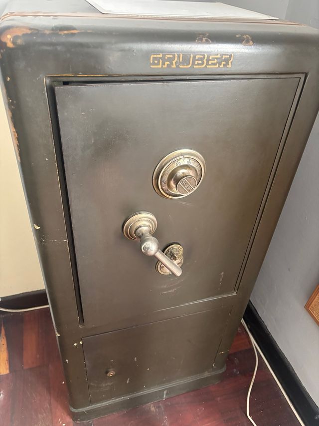 Caja fuerte de la marca Gruber, con un diseño clásico y robusto. - Mecanismo de combinación. - Tirador metálico. - Acabado en color verde oscuro.