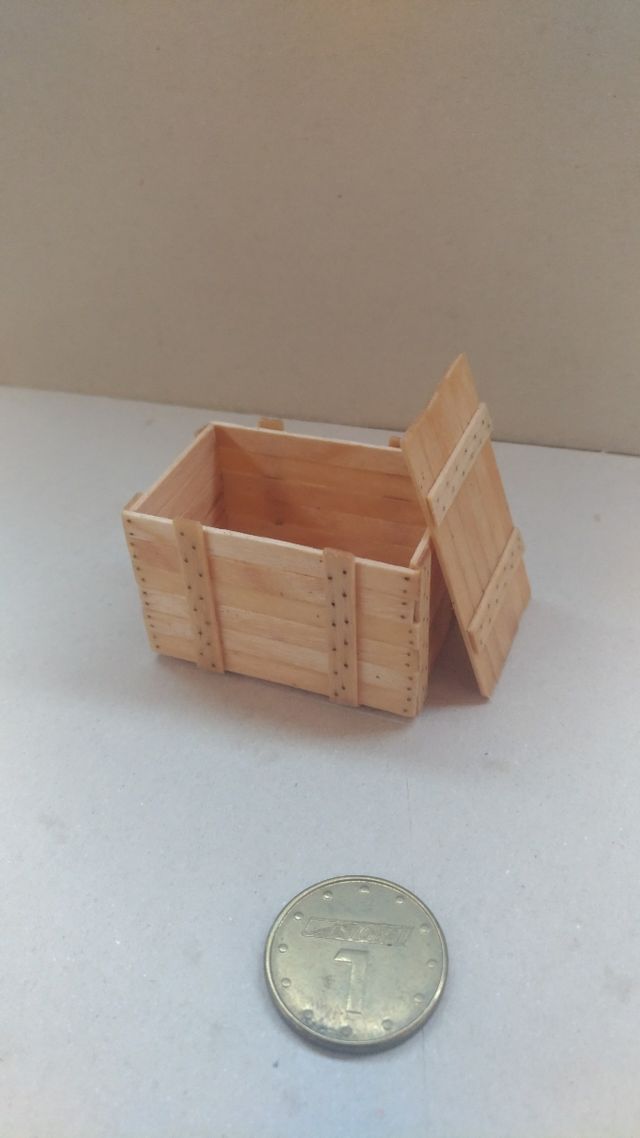 Mini cajón o arca de madera color pino , artesanal , 3,5x5cm y 3,6cm de alto , desconozco la escala , más en mi perfil