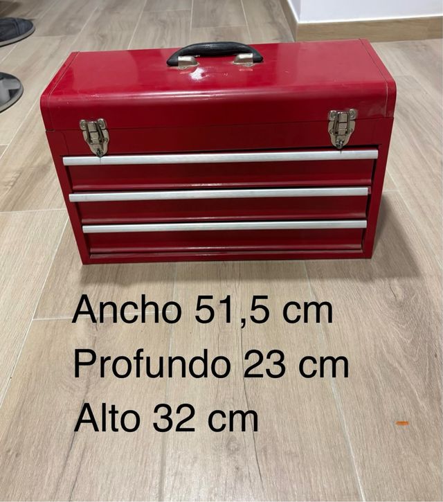 Caja herramientas metalica roja contiene casi todas las herramietas originales. llaves de vaso, llaves inglesas, etc...