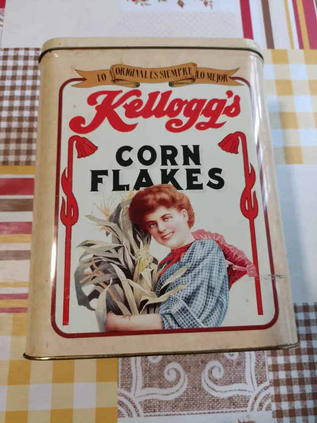 Detalles del productoBonita caja metálica vintage de Kellogg's Corn Flakes. Ideal para coleccionistas o como elemento decorativo.