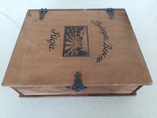 Elegante caja de madera de Bodegas Berberana, con diseño de Rioja.