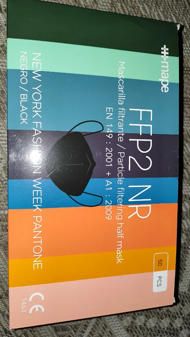 Detalles del productoCaja de mascarillas FFP2 NR de color negro, modelo New York Fashion Week Pantone.