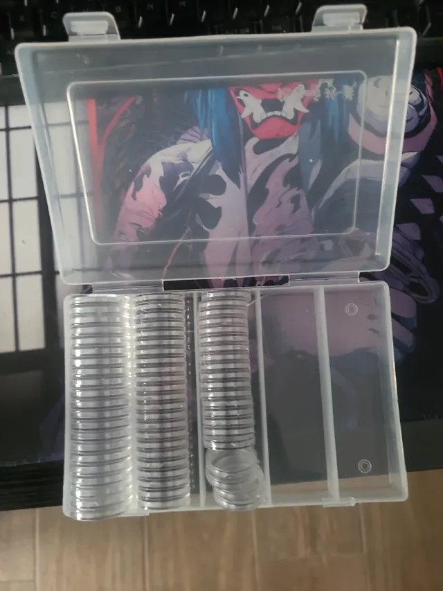 Práctica caja para organizar y proteger tus monedas. Incluye fundas para mantenerlas en perfecto estado.