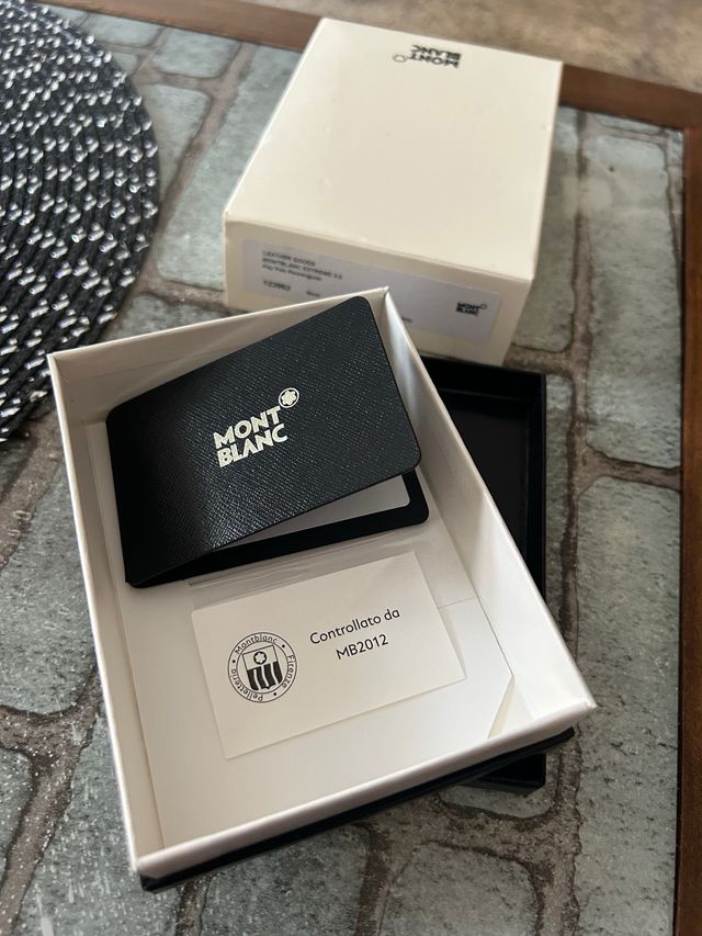 Detalles del productoElegante caja Montblanc, ideal para guardar artículos de escritura. Incluye una pequeña tarjeta con el logo de Montblanc y la referencia MB2012. La caja está en perfecto estado, luce impecable y es de color negro. - Caja rígida de cartón forrado. - Diseño sobrio y elegante. - Perfecta para regalo. Medidas del producto