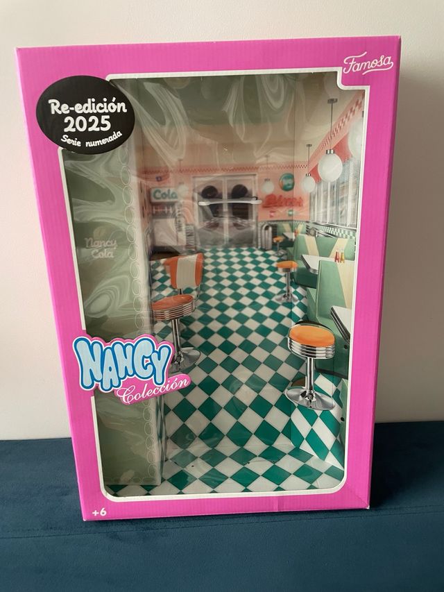 Caja de la colección Nancy Re-edición 2025. - Serie numerada. - Diseño de diner retro. - No incluye muñeca ni ningun accesorio.
