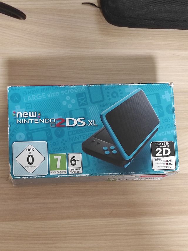 Caja para la consola Nintendo 2DS XL. Bastante usada y con rotura en la solapa del lateral como en las fotos se aprecia. Sin insert.