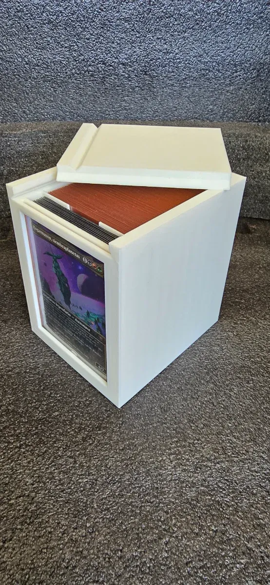 Detalles del productoCaja para guardar tus cartas de Magic The Gathering, impresa en 3D, tiene espacio para 99 cartas, enseña al comandante y cuenta con espacio para tokens, funciona con imanes puede ser en blanco o en negro