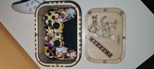 Caja hecha en madera,grabada con tematica Dragon Ball Z (Freezer). Compatible para controles de ps4, ps5, x-box series s y x. (Mando no incluido)