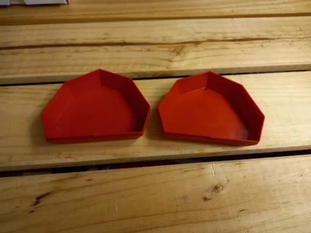 Conjunto de 23 caja de plástico roja con forma hexagonal, ideal para guardar prótesis dentales. - Material: Plástico. - Color: Rojo. - Forma: Hexagonal.