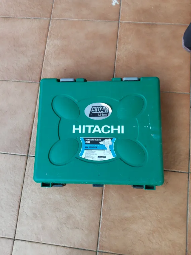 Caja de plástico verde para guardar herramientas eléctricas. - Marca: Hitachi Koki - Modelo: DV 18DBL - Capacidad de batería: 5.0Ah Li-ion