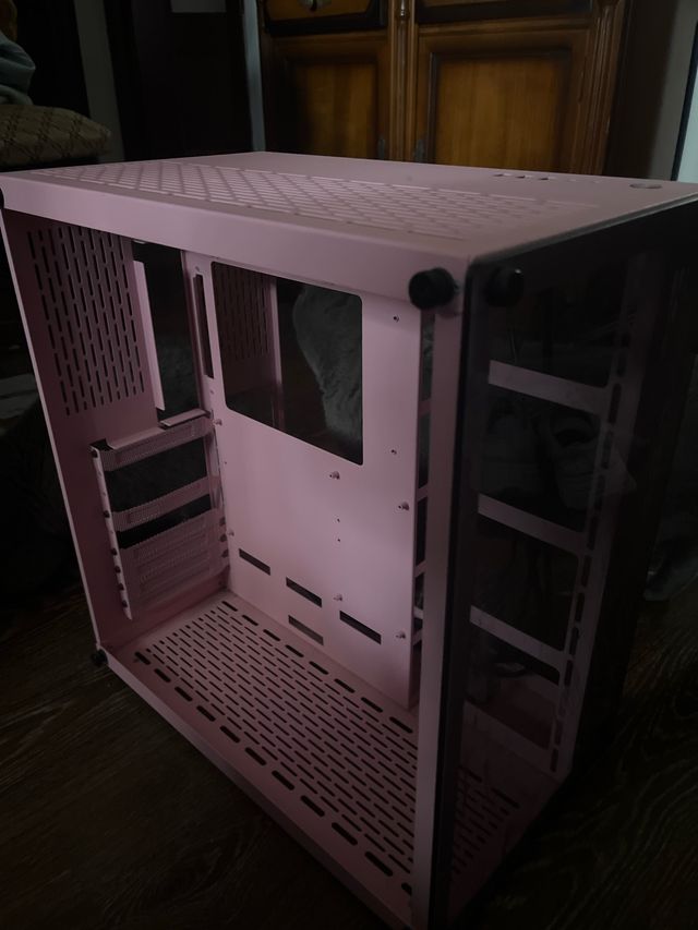 Detalles del productoCaja para ordenador de sobremesa rosa.