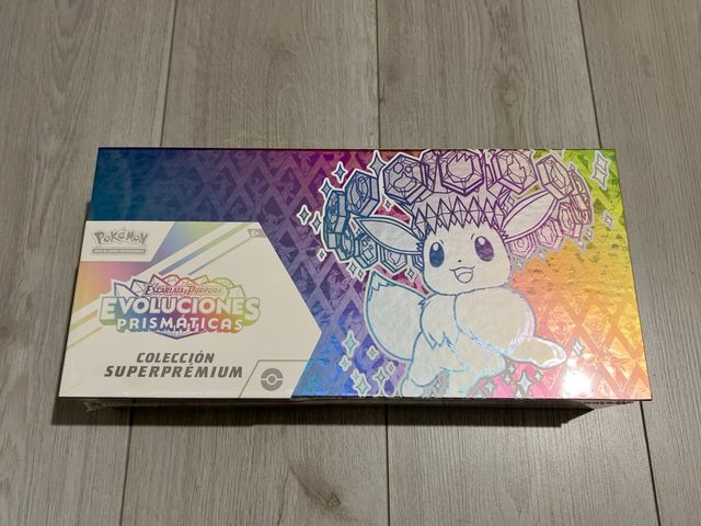 Caja cartas Colección Superpremium de Pokémon, Evoluciones Prismáticas. Sellada, en español.