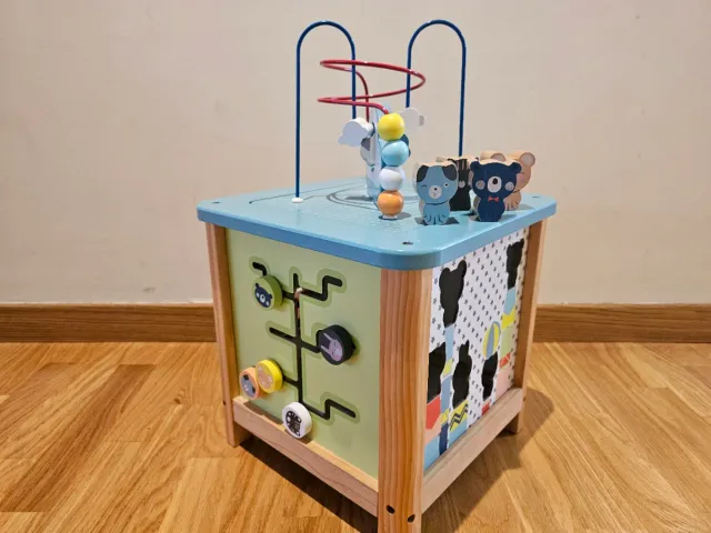 Detalles del productoCaja de actividades de madera para el desarrollo de la psicomotricidad en niños a partir de 1 año. Fomenta la coordinación y la destreza. En perfecto estado.