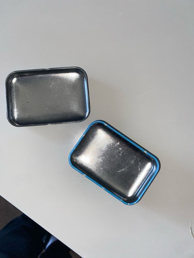 Pequeña caja metálica, ideal para guardar los dientes del Ratoncito Pérez. - Material: Metal. - Diseño: Interior plateado con borde azul y detalles. - Forma: Rectangular.