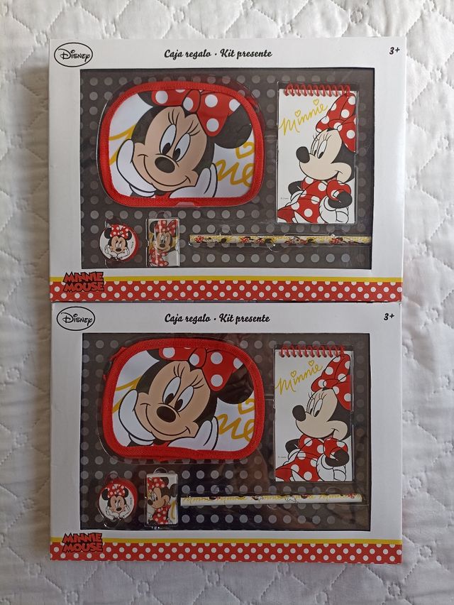 Dos lotes de Minnie Mouse Disney: 1 bolsito, 1 lápiz, 1 libreta, 1 goma, 1 sacapuntas. Nuevos en su caja regalo. 5 € CADA UNO
