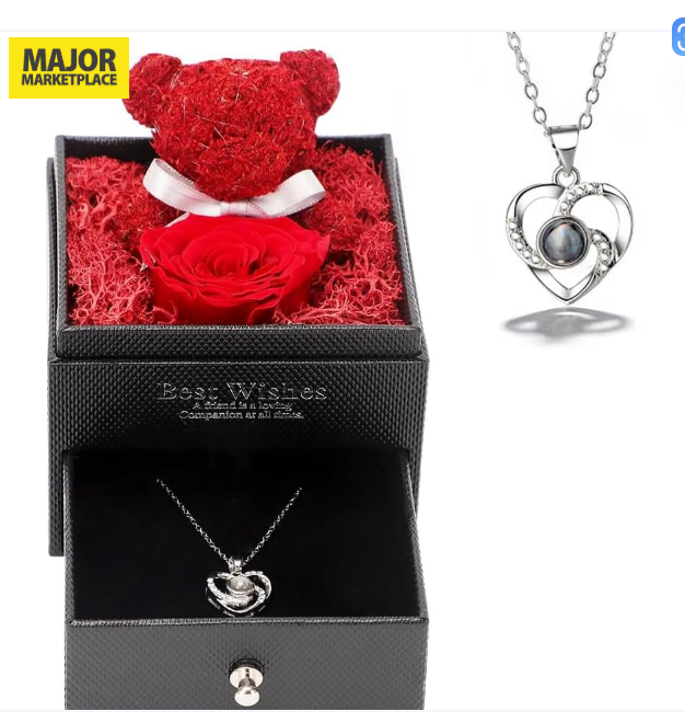 Caja regalo oso rojo & collar corazón