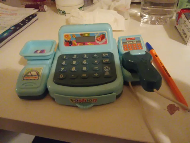 Detalles del productoDivertida caja registradora de juguete en color azul, ideal para que los más pequeños jueguen a las tiendas. Incluye balanza y escáner.