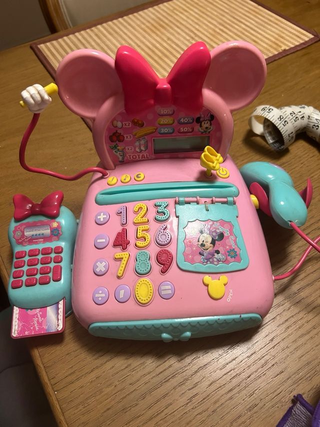 Detalles del productoCaja registradora de juguete con temática de Minnie Mouse. Incluye accesorios para jugar.