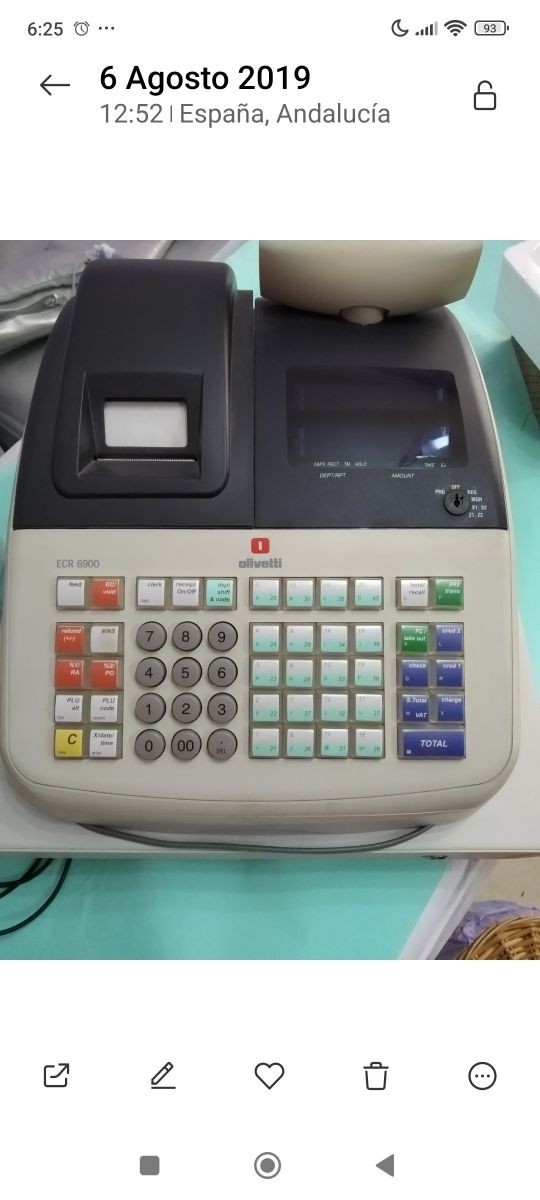 Caja registradora Olivetti ECR 6900. - Teclado numérico. - Pantalla. - Impresora de recibos.