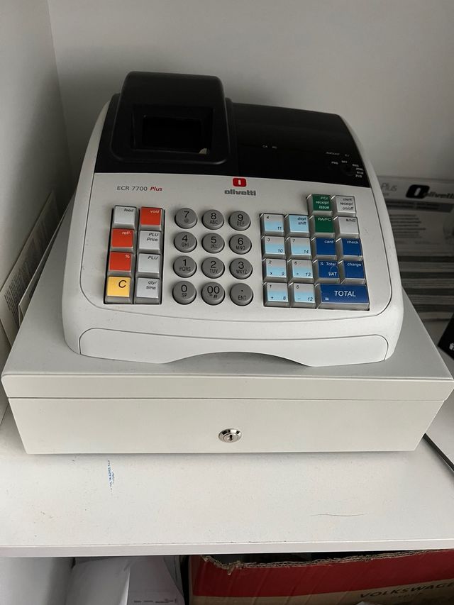 Caja registradora Olivetti 7700 plus. Medidas: ancho: 34 cms, Fondo:36cms, Alto: 23 cms