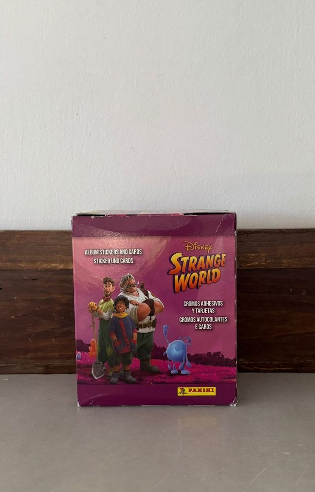 Caja de sobres de cromos de la película Disney Strange World. - Contiene sobres de cromos adhesivos y tarjetas. - Producto de la marca Panini.
