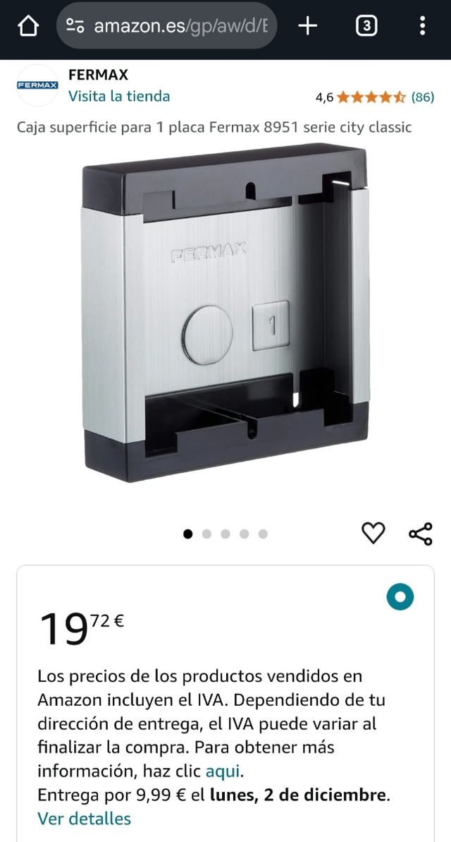 Caja superficie telefonillo, se vende sin usar, la compré y al final no fue necesaria para la instalación del timbre exterior. Precio 19'72€ en amazon, completamente nueva por 12€.