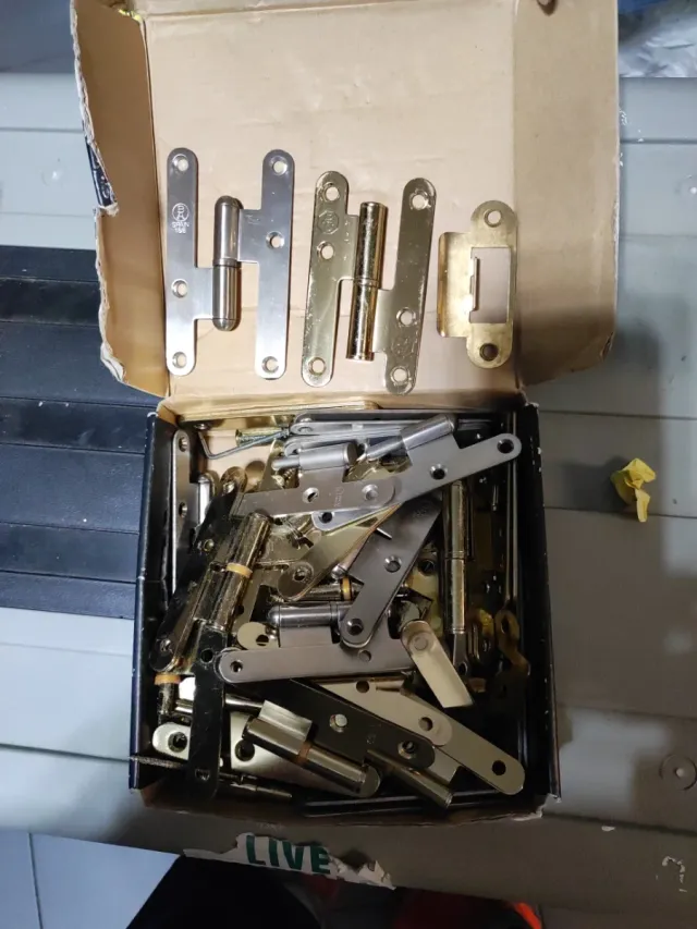 Detalles del productoSe vende caja con un surtido de bisagras de diferentes tamaños y acabados.