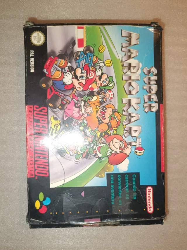 Detalles del productoCaja original vacía para el videojuego Super Mario Kart de Super Nintendo (SNES). Versión PAL.