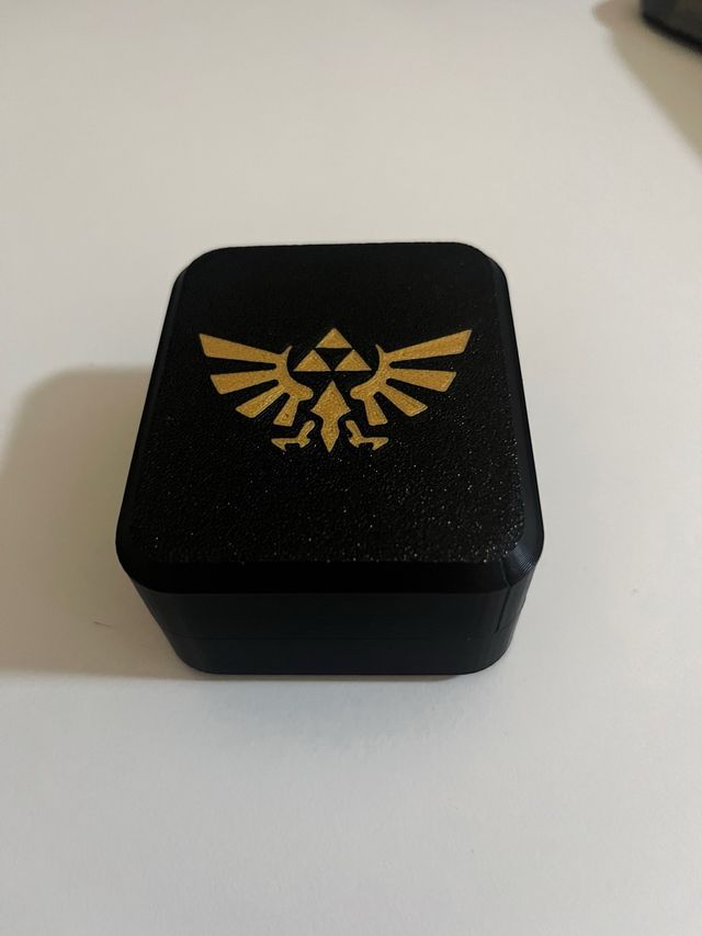 - Diseño con el logo dorado de la Trifuerza de Zelda.