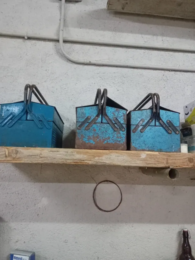 Detalles del productoConjunto de tres cajas de herramientas metálicas de color azul. Son ideales para organizar y transportar herramientas.