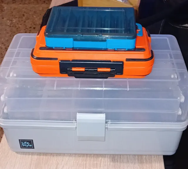 Detalles del productoConjunto de cajas de pesca para organizar tus accesorios.