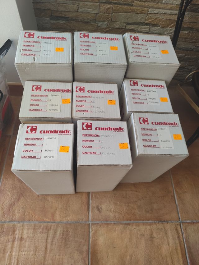 Detalles del productoVendo 9 cajas de 12 pares de hombreras cada una, de tallas 1, 2 y 3, de espuma, blancas y negras, según se ve en la foto. Tan solo faltan dos pares de hombreras blancas del 1, el resto de cajas están completas. Son restos de una mercería. Todas por 40€