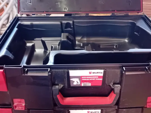 Detalles del productoConjunto de cajas porta herramientas de la marca Würth, diseñadas para el transporte y almacenamiento de herramientas eléctricas portátiles.