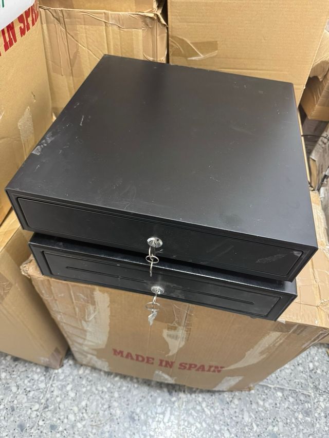 Caja registradora negra en buen estado. Ideales para negocios pequeños. - Es de metal. - Tienen 5 compartimentos para billetes. - Incluye llave. -Precio por unidad