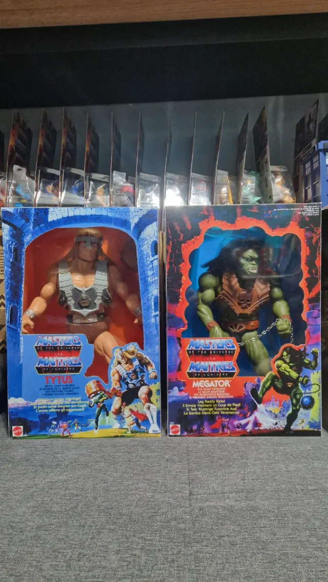 Detalles del productoSe venden 2 cajas version italiana de gran tamaño para proteger tus tytanes de la esposicion solar la decoloracion el polvo y la humedad las salpicaduras de liquidos abrasivos o cortes o enganchoenes de cabello que se pueda caer y romper etz. Proteguidos de por vida.. 2 reproducción para Gigantes de Masters del Universo Tytus y Megator en muy buen estado como se ve en las fotos.. medidas similares a las originales.