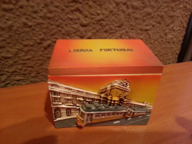 Bonita caja recuerdo de la ciudad de Lisboa Portugal, para guardar cosillas. Con la imagen en relieve. Dimensiones: 7,5 x 5 cm.